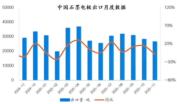 【海关数据】环比减少6.41%!2025年11月中国石墨电极、针状焦进出口数据发布 1.石墨电极据海关数据统计显示,2025年11月中国石墨电极出口量为2.63万吨,环比减少6.41%,同比减少8.... ...